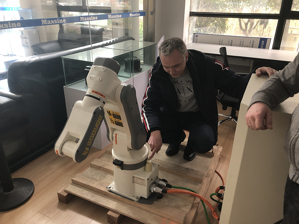 身為機(jī)器人應(yīng)用廠家,展廳中的工業(yè)機(jī)器人引起了俄羅斯朋友的興趣,大家圍繞邁信自主研發(fā)的六軸多合一伺服驅(qū)動(dòng)器EPR6及工業(yè)機(jī)器人相談甚歡。