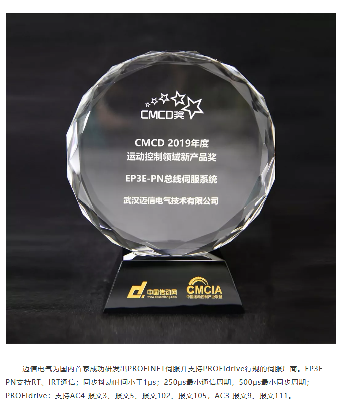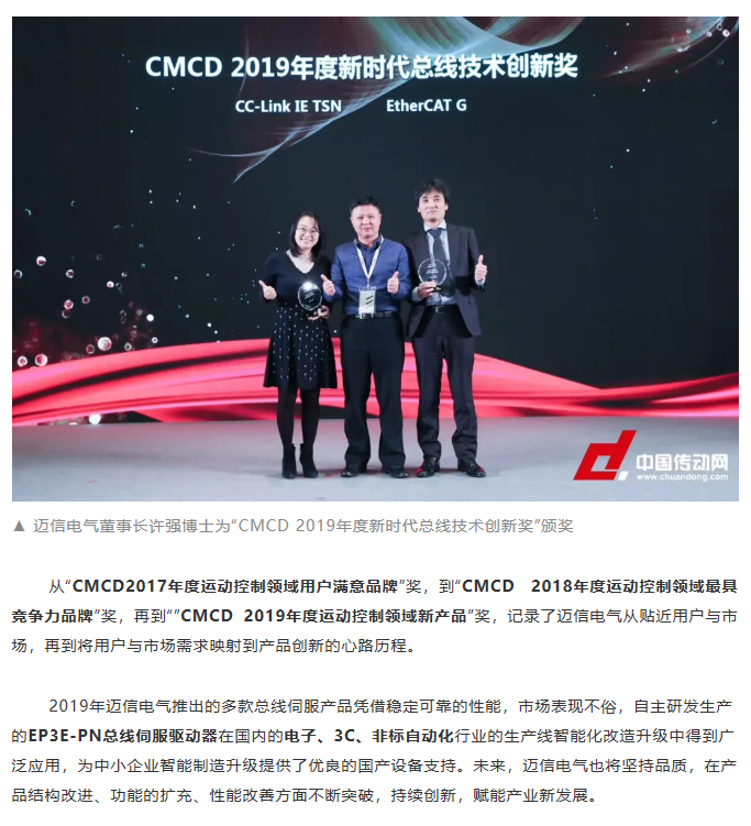 專注產品 順應市場 | EP3E-PN榮獲CMCD 2019年度運動控制領域新產品獎