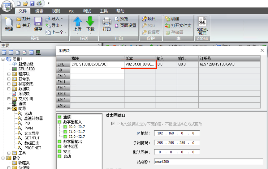1. 創建PLC項目,確認PLC固件版本為V02.04