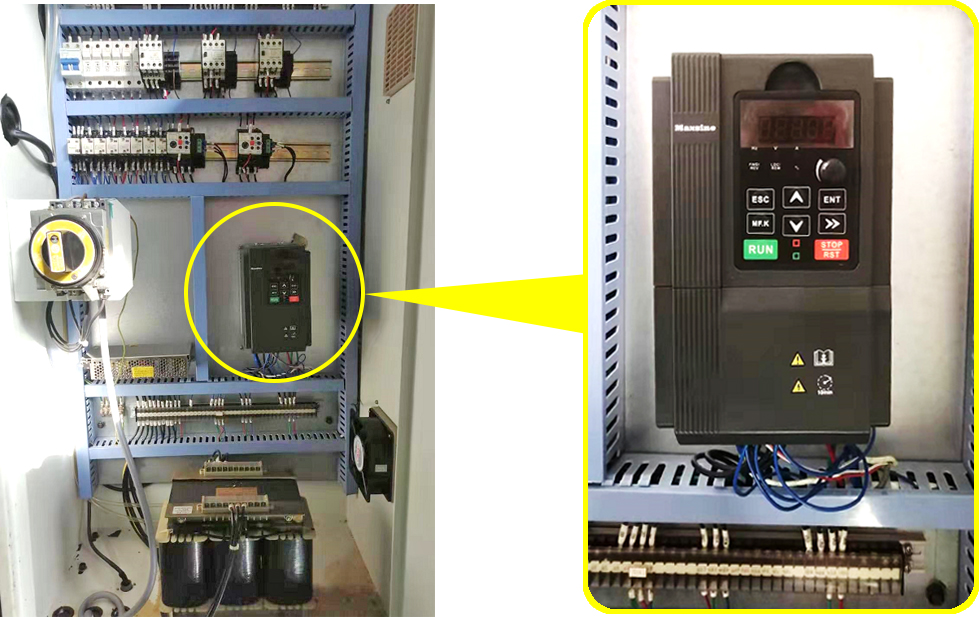 從上式可看出,電機(jī)轉(zhuǎn)速與頻率成正比,改變頻率即可以平滑地調(diào)節(jié)電機(jī)轉(zhuǎn)速,而對(duì)于變頻器而言,其頻率的調(diào)節(jié)范圍是很寬的,可在0~600Hz(甚至更高頻率 )之間任意調(diào)節(jié),因此主軸電機(jī)轉(zhuǎn)速可以在較寬的范圍內(nèi)調(diào)節(jié)。當(dāng)然轉(zhuǎn)速提高后,還應(yīng)考慮到對(duì)其軸承及繞組的影響,防止電機(jī)過分磨損及過熱,一般可以通過設(shè)定最高頻率來進(jìn)行限定。