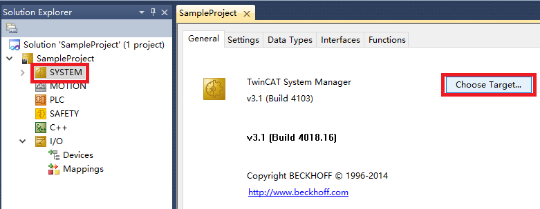 用 PC 鍵盤的“ F8”按鈕,或者在左側工程欄雙擊SYSTEM,打開界面,點擊“ Choose Target System”:
