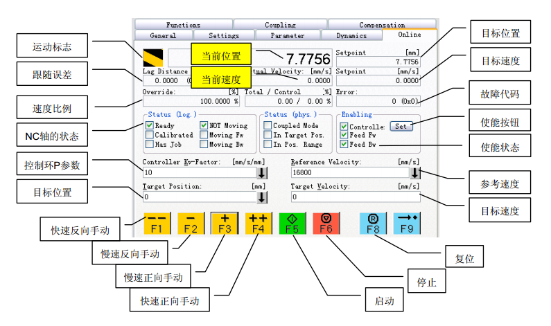 F5:按指定速度 Target Velocity 運動到指定位置 Target Position。