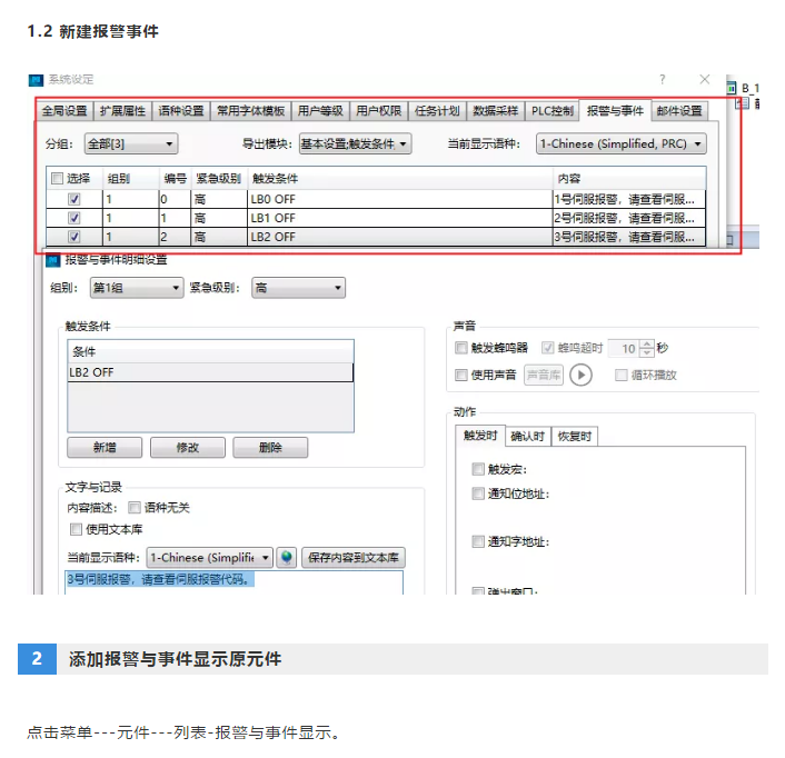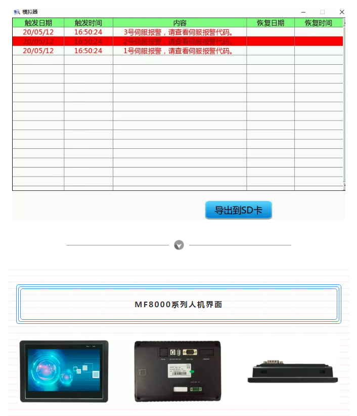 首頁>文章中心>應用教程>邁信電氣MF系列人機界面_報警與事件顯示功能案例