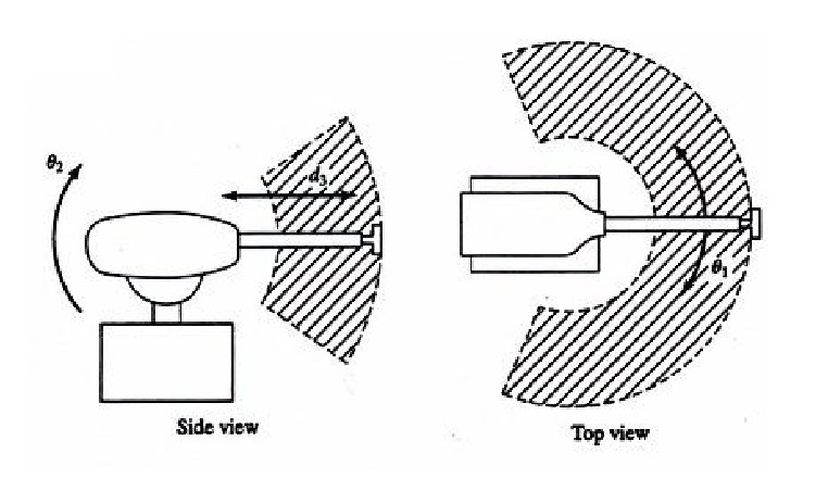 缺點:它的手臂可以到達的空間受到限制,不能到達近立柱或近地面的空間;
