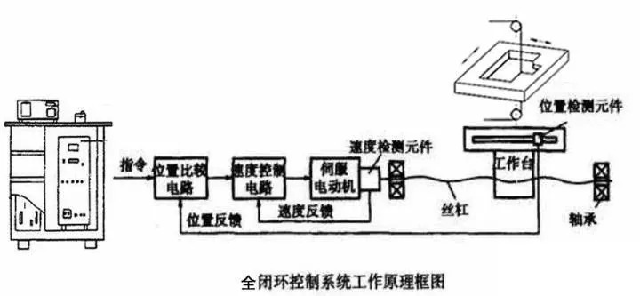 全閉環(huán)控制簡(jiǎn)稱閉環(huán)控制(closed-loop control system)則是由信號(hào)正向通路和反饋通路構(gòu)成閉合回路的自動(dòng)控制系統(tǒng),又稱反饋控制系統(tǒng)。由伺服電機(jī)、比較線路、伺服放大線路、速度檢測(cè)器和安裝在工作臺(tái)上的位置檢測(cè)器(直線光柵尺)組成,通過軟件實(shí)時(shí)補(bǔ)償絲桿的精度誤差和換向回差,自動(dòng)檢測(cè)并與指令值進(jìn)行比較,用差值進(jìn)行控制。