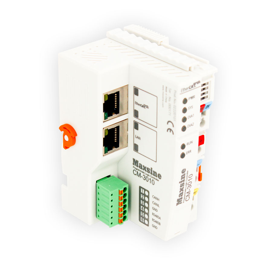 ● 單機可控 8 個 EtherCAT 軸,2ms 同步可帶 2 軸,支持 PLCopen 運動控制指令。 監控調試用以太網或串口,支持 IEC61131-3 編程規范。