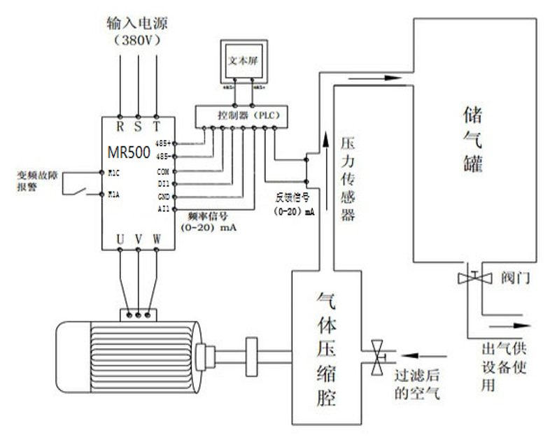 恒壓供氣系統(tǒng)由于實(shí)現(xiàn)了變頻控制,基本上消除排空放氣的情況,從而改善了噪音對環(huán)境的污染。